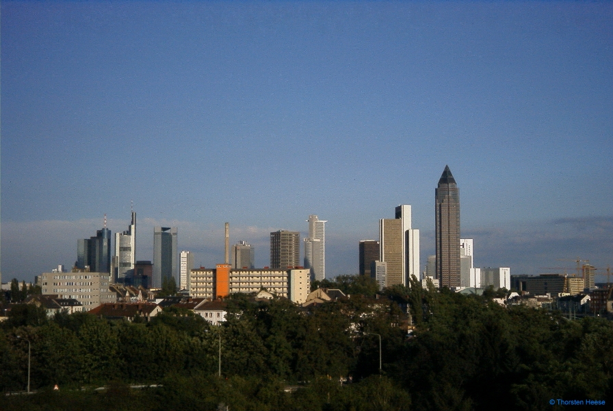 Aussicht auf die Skyline von Frankfurt Main aus dem 5 Stock der Neuen Deutschen Börse
